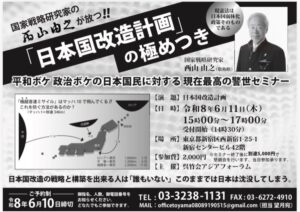 「日本国改造計画」の極めつき 平和ボケ 政治ボケの日本国民に対する現在最高の警世セミナー